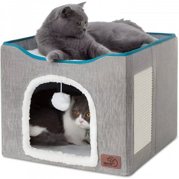Foldable Two-Tier Cat House with Scratching Board and Cozy Mat