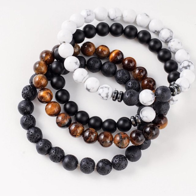 Give your look a confident, masculine edge with this 4-piece natural stone bracelet set crafted for men who appreciate timeless style and strength. Designed with real 8mm beads, each bracelet features a unique mix of Tiger Eye, Volcanic Lava, and Turquoise stones—a combination that embodies energy, balance, and individuality. Whether you’re dressing up for a night out or adding subtle flair to your casual outfit, this bracelet set adds the perfect finishing touch.