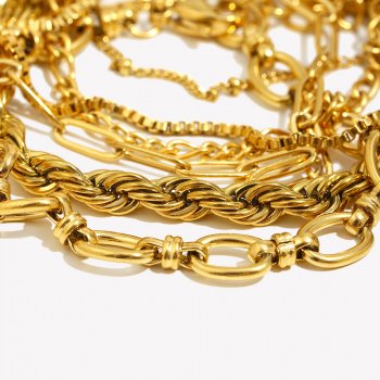 Elegant Figaro Twist Chain Bracelet 18K Gold Plated Stainless Steel