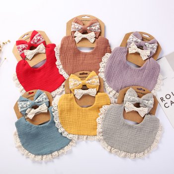 3-Piece Muslin Cotton Baby Bibs & Lace Headbands Set – Soft & Stylish