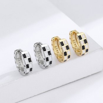 14K Gold Plated Double Piercing Chain Huggie Hoop Earrings with CZ Stud